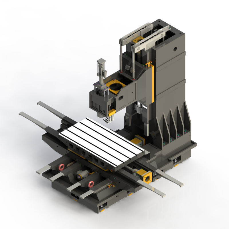4、底座4条导轨跟7.5t的光机机身重量,人字形立柱结构设计,Y轴电机后置,提升重切刚性的同时有效保障精度稳定持久。