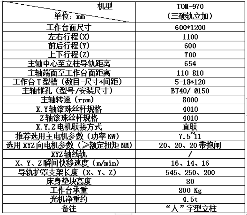 1、TOM-970硬轨立式加工中心三轴采用高刚性淬火滑动式矩形导轨,有效提升台面承重及机身重切刚性。