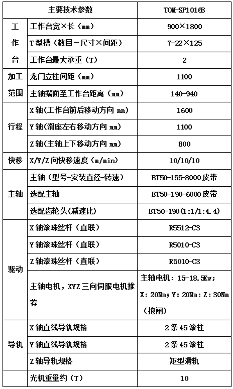 光机技术参数