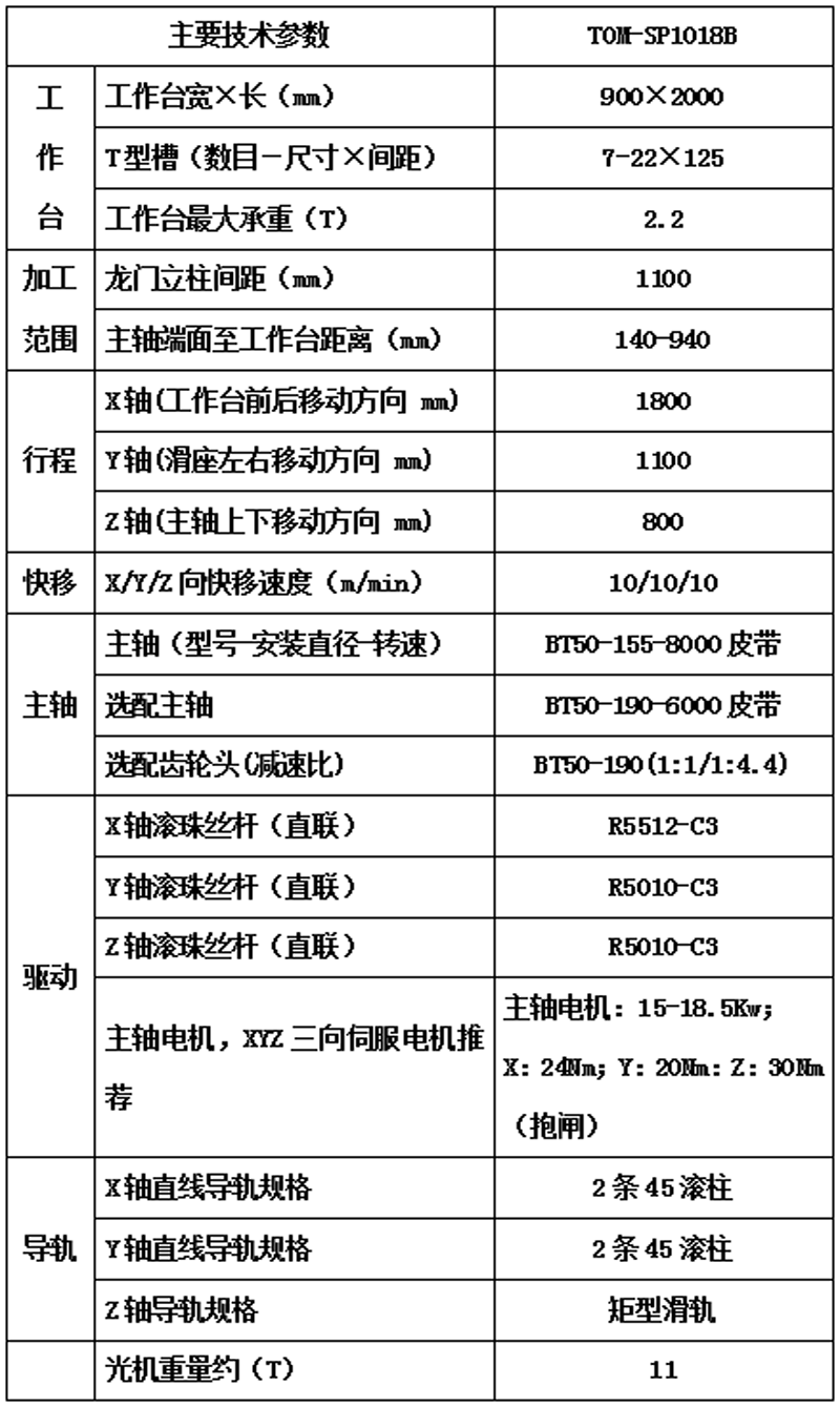 光机技术参数