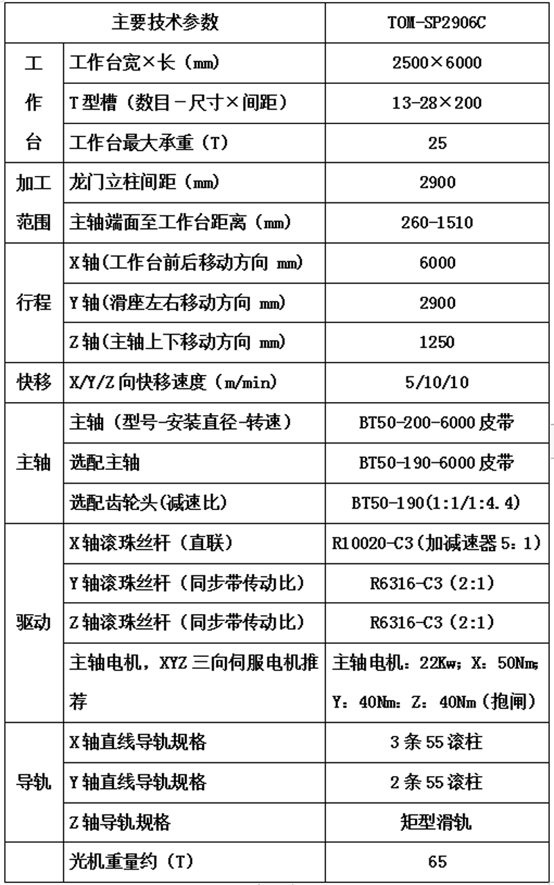 光机技术参数