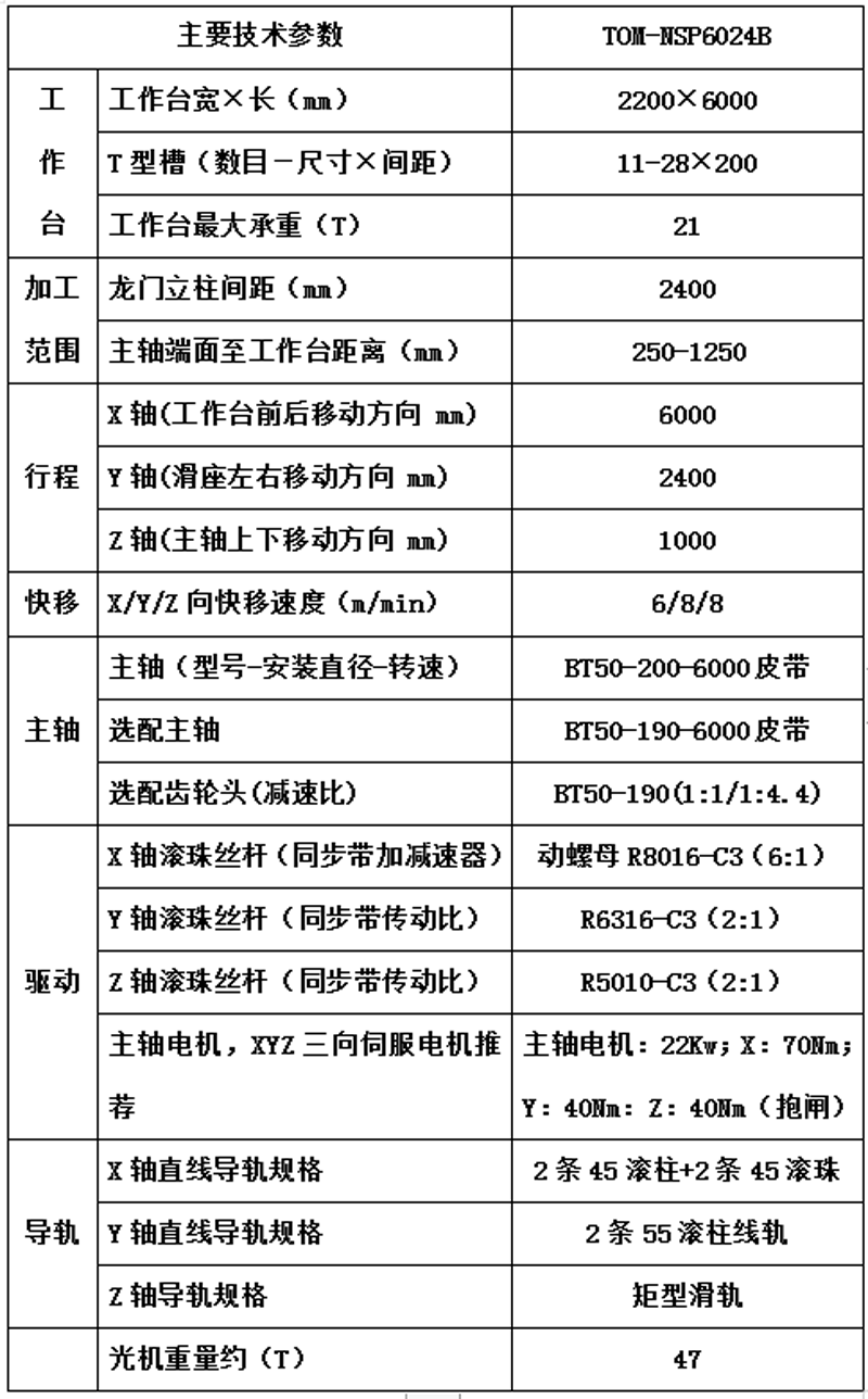光机技术参数